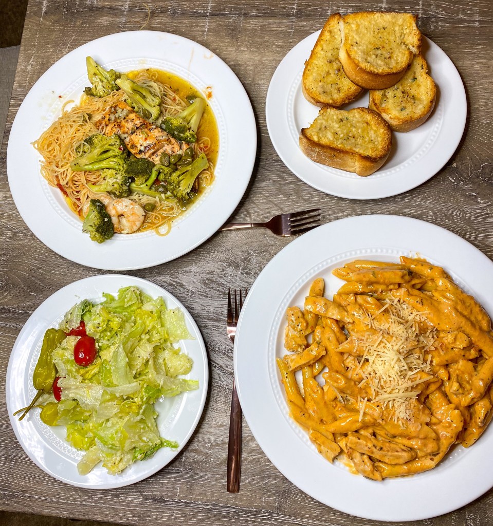 Ordered dinner for take out from an amazing restaurant and put it on real plates to make it seem like we were really there!